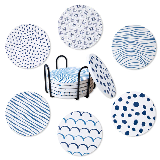 Coasters Set of 6, Absorbent Ceramic Drink Coasters with Holder